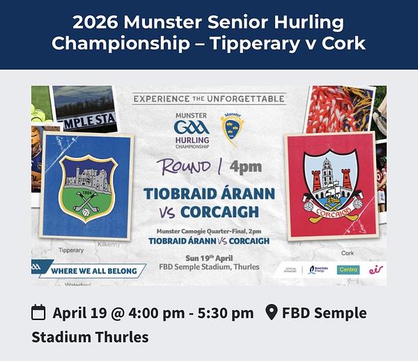 Munster Hurllig Championship : Cork V Tipp - Tickets available only via clubs - to apply complete application request form here > TICKET APPLICATION FORM